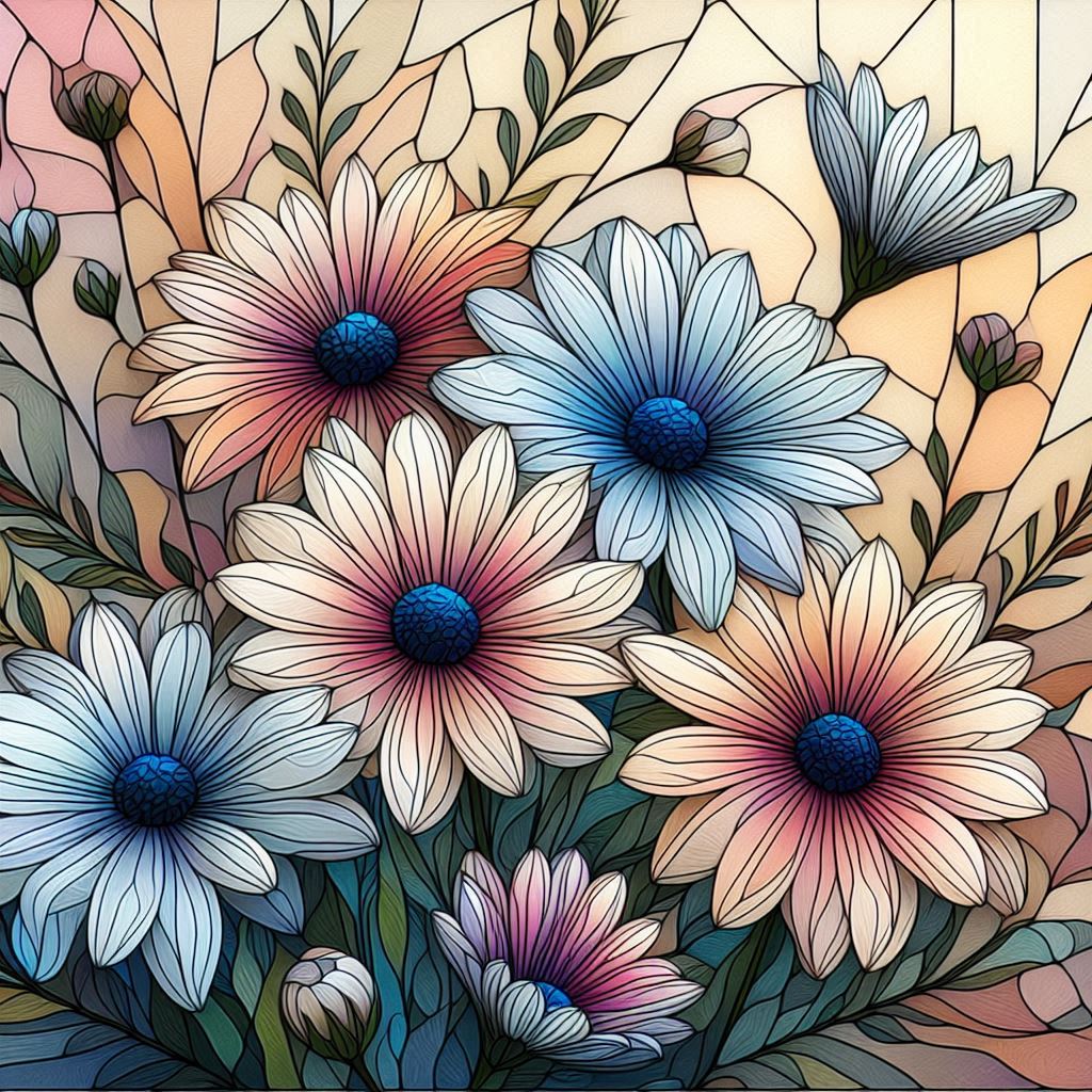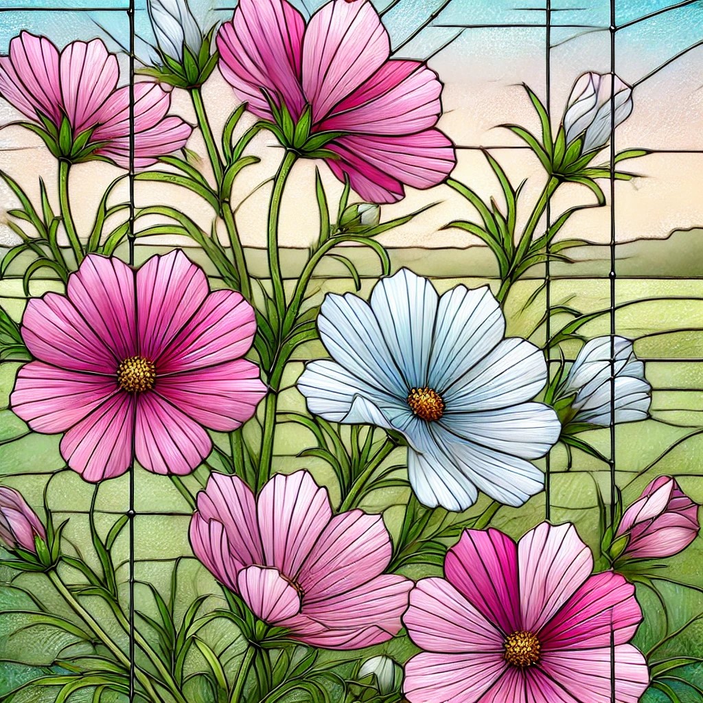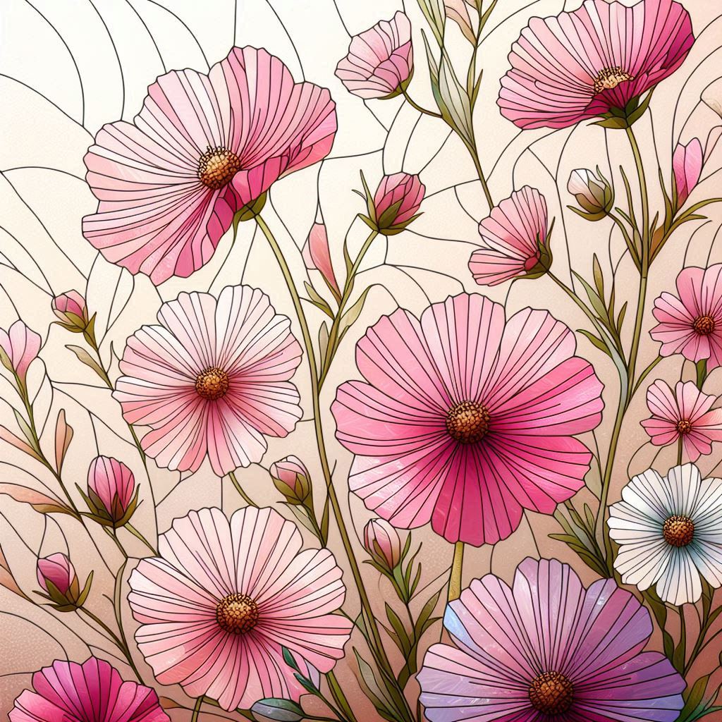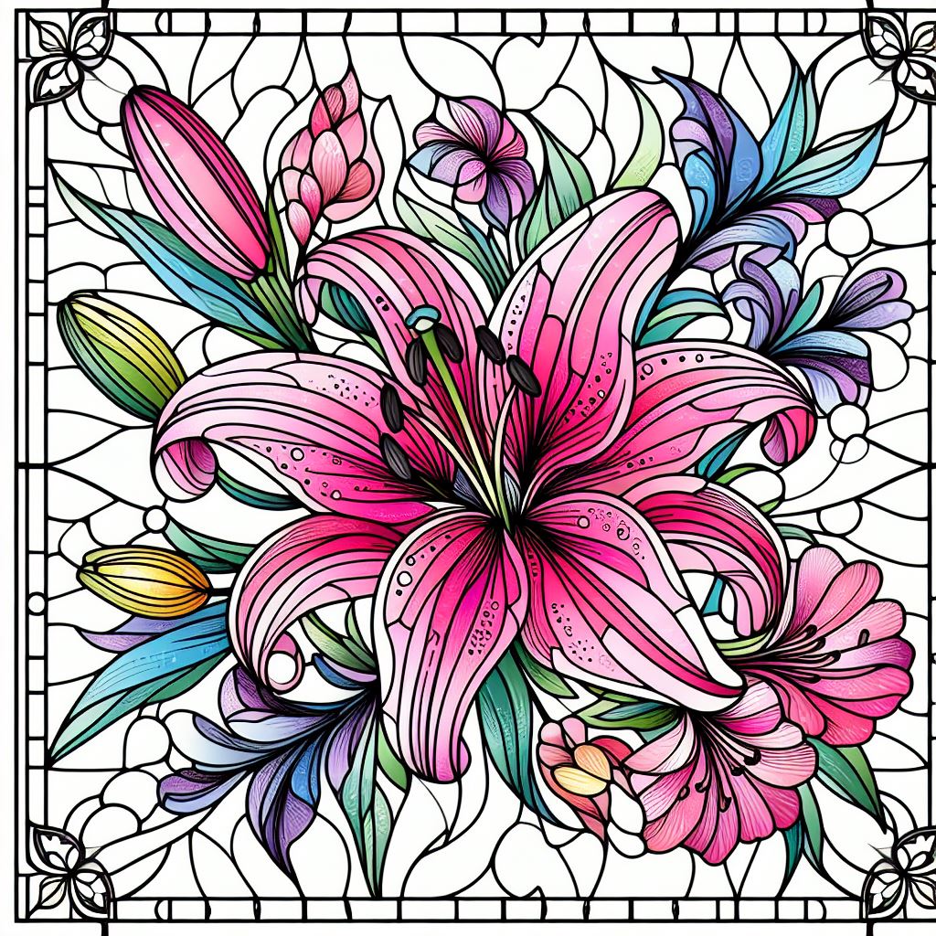 Coloring Flowers 1 – Stained Glass Style Coloring Book ~ 花の彩り 1~